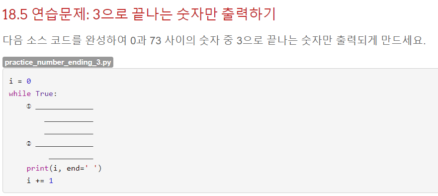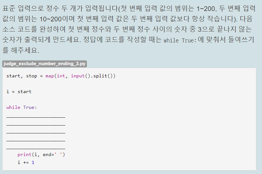조건식은 두개를 써줘서 하나는 3으로 끝나는지 여부 확인용, 하나는 반복문 탈출용으로 하면된다.