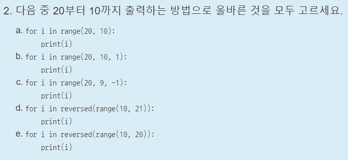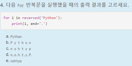 3행 : range로 만들어진 값들을 reversed해서 높은수부터 j에 들어가게 한다.