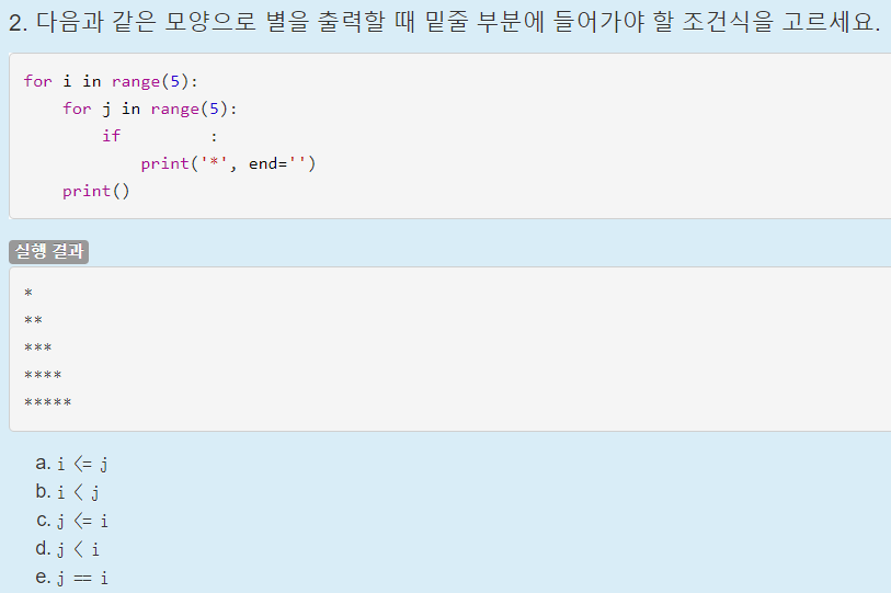 if문의 조건식은 j가 i보다 작다면 공백을 출력하고 아니라면 *을 출력하면 될 것 같다.