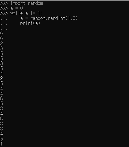 위에서 배운 break와 continue, 그리고 입력받는 input함수를 이용해서 사용자가 원하는 만큼 반복문을 실행하도록 할 수 있다.