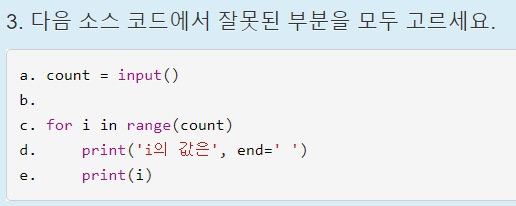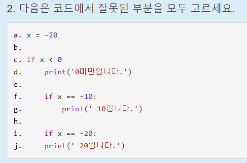 d : if문 안에 해당하는 코드가 없다.(들여쓰기가 안돼 있거나, pass를 안써줬다.) X