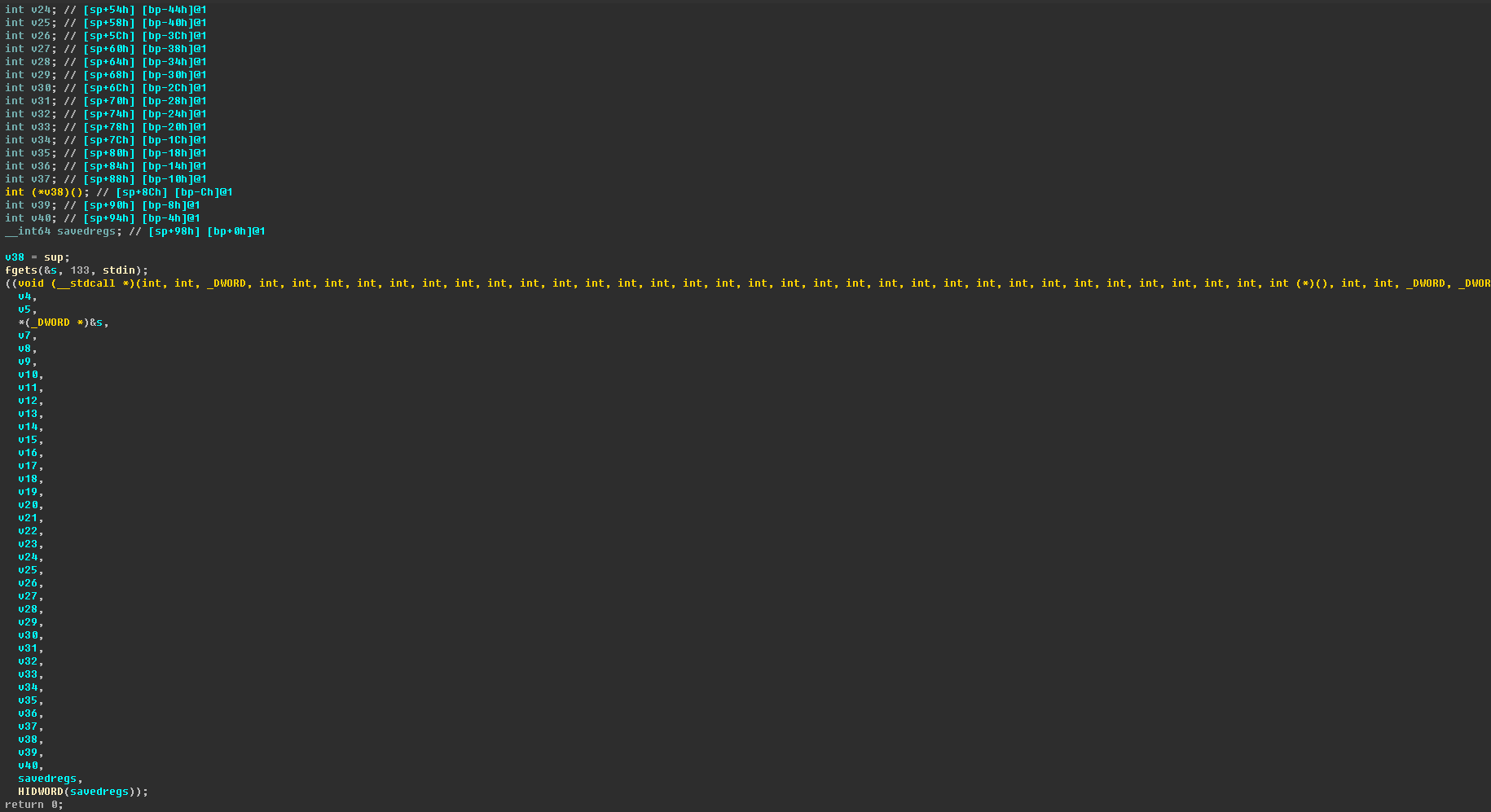 ida로 main 함수를 c 코드로 보니 엄청난 양의 코드가 존재하는 것을 볼 수 있다.(ida 문제인가..?)