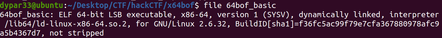 file 명령어로 문제 파일의 정보를 확인해보면 64bit라는 것을 알 수 있다.