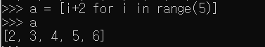 파이썬의 리스트는 리스트안에 for 반복문, if 조건문을 사용할 수 있다. 리스트 안에 식을 통해서 리스트를 생성하는 것을 리스트 컴프리헨션이라 부른다.