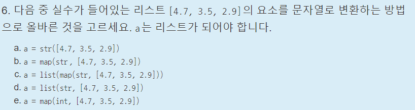 c : 다른 보기들과 달리 map으로 변환한 값을 a에 바로 넣어주지 않고 list로 형 변환을 시켜서 변환했다.