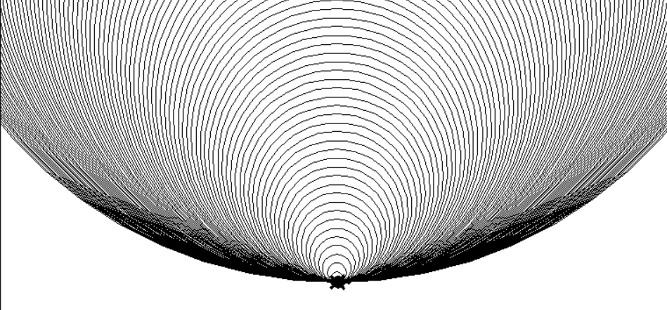 100으로 반지름을 설정해서 사용하니 100만큼을 반지름으로 가지는 원이 출력됐다.