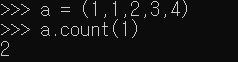 위 사진처럼 괄호안에 구할 값을 써준다면, 튜플 안에서 그 값의 개수를 구해준다.