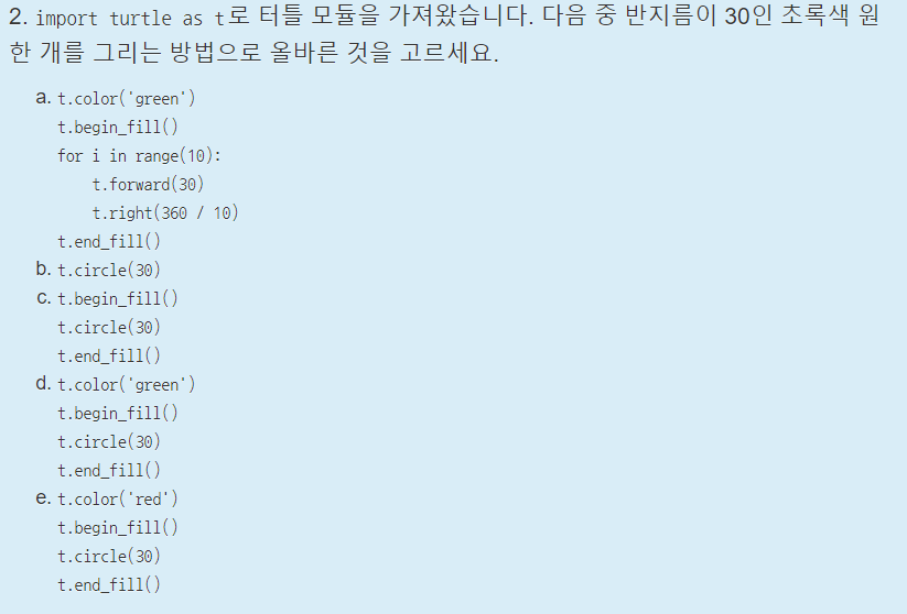 begin_fill은 color 함수로 정한 색으로 색칠을 시작해주는 함수다. end_fill 함수는 begin_fill로 시작한 색칠을 멈춰주는 역할이다.