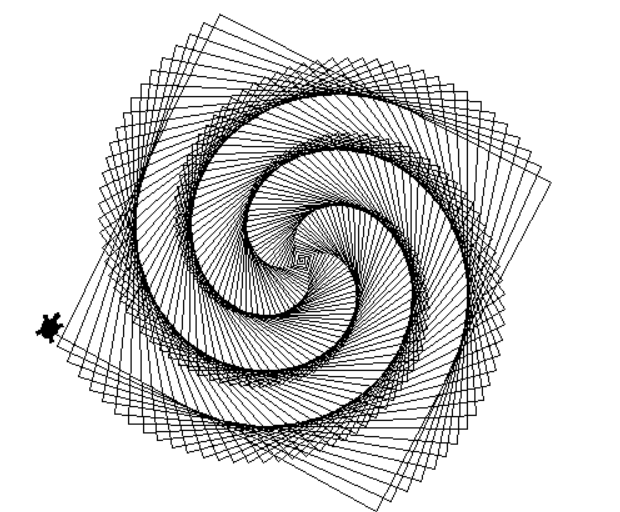 위 코드는 앞으로 100 전진, 오른쪽으로 90도 회전하는 코드를 4번 반복시켜 사각형을 만들어주는 코드다.