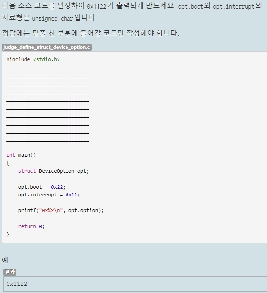 공용체의 성질을 이용해 리틀 엔디안으로 저장된 0x22와 0x11을 option 멤버로 0x1122로 출력하는 것이 목적이다.