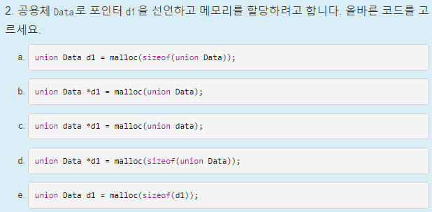 A *a = malloc(sizeof(A)); // 공용체 포인터 변수 선언 및 메모리 할당