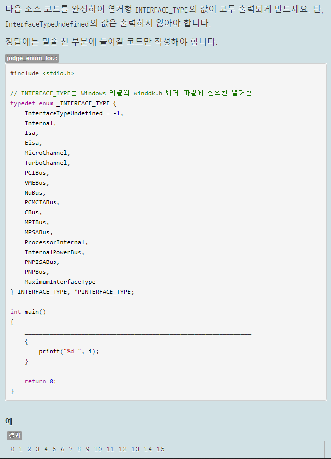 요약하자면 for문으로 정의된 열거형의 값들을 0부터 15까지 쭉 출력하는 것이 목적이다.