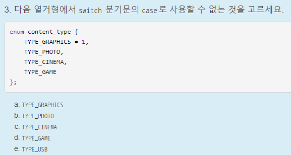 } // 열거형에 작성된 주석대로 switch문을 완성