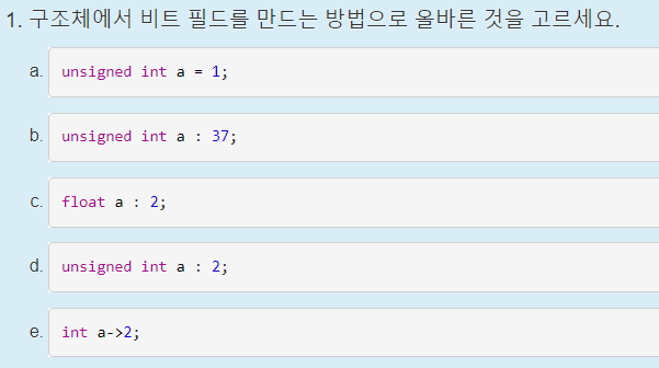 출력해보면 125가 나오는데, 이 이유는 d는 a,b,c와 공간을 공유하고 있기 때문에(공용체) d의 값은 a, b, c의 bit를 총 합친 값으로 되기 때문이다. 자세하게 설명하면 작은 값부터 공간을 뒤에서 차지하기 때문에 a 멤버는 1이므로 1(0000 0001), b는 2이므로 10(0000 0010), c는 15이므로 1111(0000 1111) 이 bit를 모두 합치면 1111 10 1이 된다.