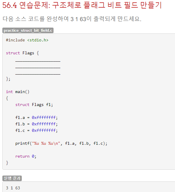 위에서 구조체를 선언한 것을 보면 unsigned int로 선언한 것을 볼 수 있는데, 이 unsigned int로 선언하면 비트 필드의 최대 크기가 이 unsigned int 자료형의 크기가 된다. 따라서 unsinged int보다 큰 값은 저장할 수 없다.