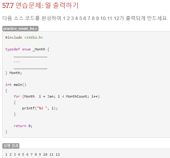 이번에는 for문으로 열거형 값들의 정수형 값을 1~12까지 출력하는 것이 목적이다.