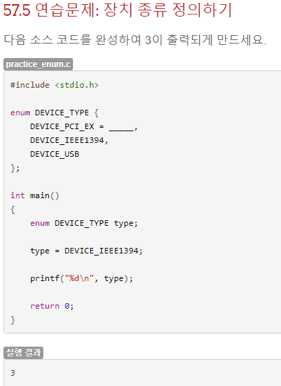 또한 열거형 역시 구조체와 마찬가지로 정의만 해서는 사용할 수 없기 때문에 enum <열거형 명> <변수>;로 사용해야한다.