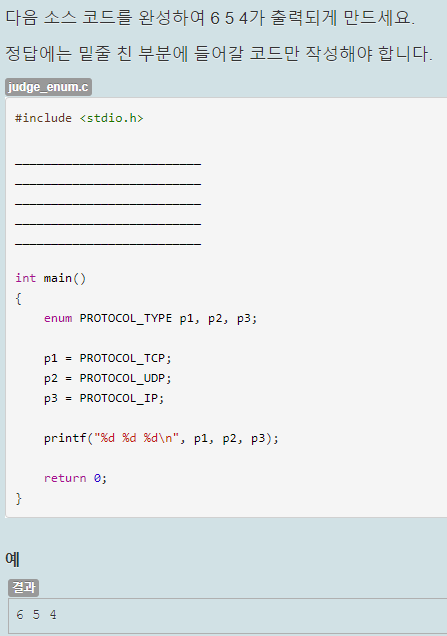 6, 5, 4가 출력되도록 열거형을 정의하는 것이 목적이다.