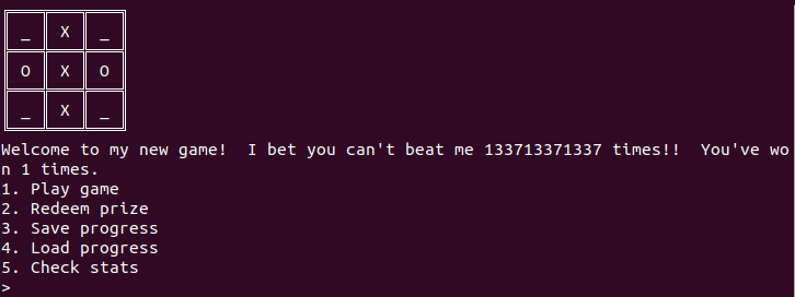 tic tae toc이라는 3목과 비슷한 게임을 진행하는데 133713371337번을 이겨야된다는 것을 알 수 있다.(근데 133713371337번을 이겼을 때 flag를 얻을 수도 없다.)