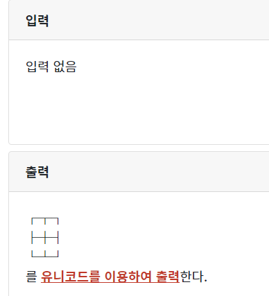 유니코드 출력은 \u로 가능해서 해당 문자 유니코드를 찾아서 print, \u, \n으로 출력했다.