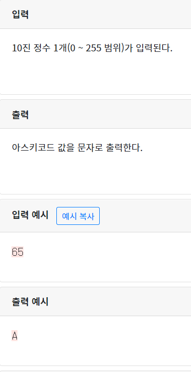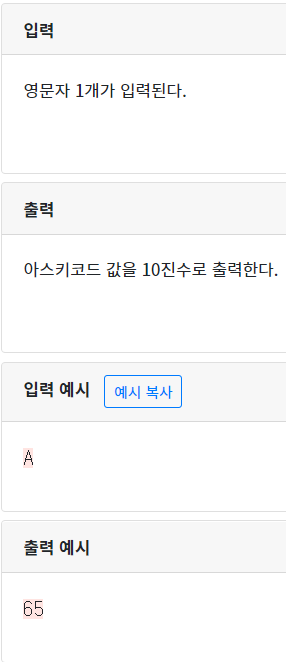 1010문제와 비슷하게 입력을 받고, 입력값을 그대로 출력하는 것이지만, 이번에는 문자형으로 출력해주는게 목적이다.