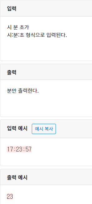 시:분:초 형식으로 입력되는데 여기서 분만 출력하는 것이 목적이다.
