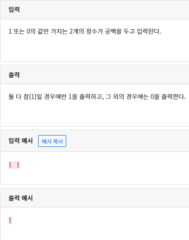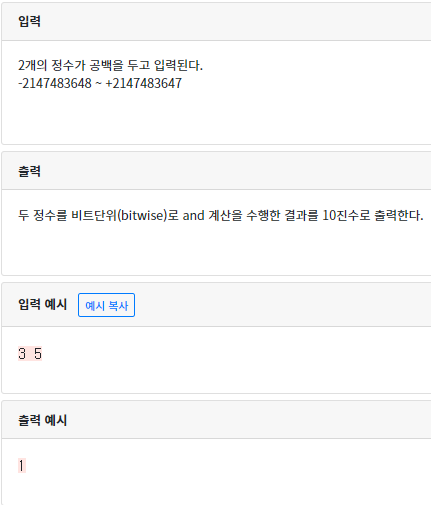 입력 된 두 값을 비트 단위로 and 연산해서 만들어진 값을 10진수로 출력하는 것이 목적이다.