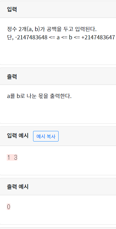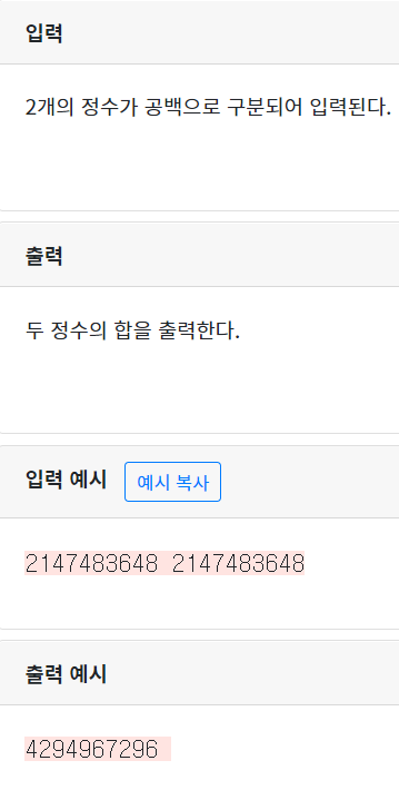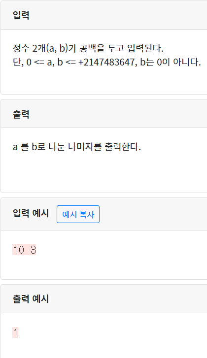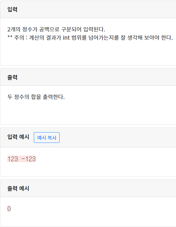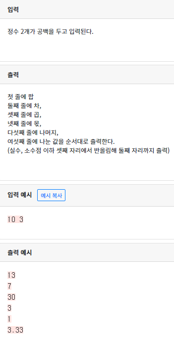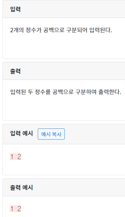 2개의 정수가 공백으로 구분되어 입력되는데, 이 두 정수를 공백으로 구분하여 출력하는 것이 목적이다.