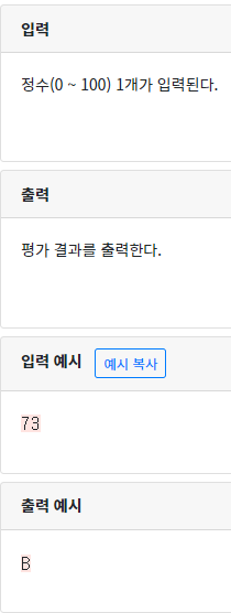 0~100 사이의 정수가 입력되면 그 정수의 평가 결과를 출력하는 것이 목적이다.