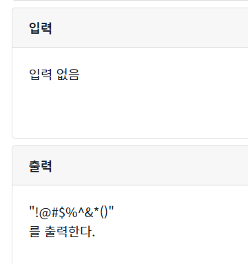"!@#$%^&*()"를 큰 따음표 포함으로 출력하는 것이 목적이다.