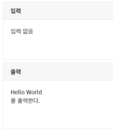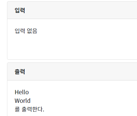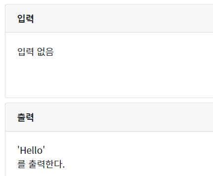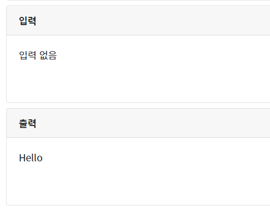 입력 없이 'Hello'를 출력 시키는 것이 목적이다.