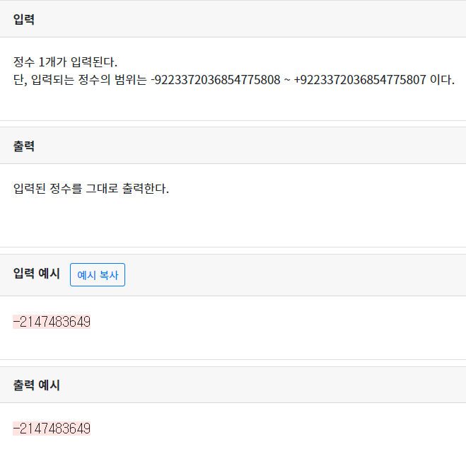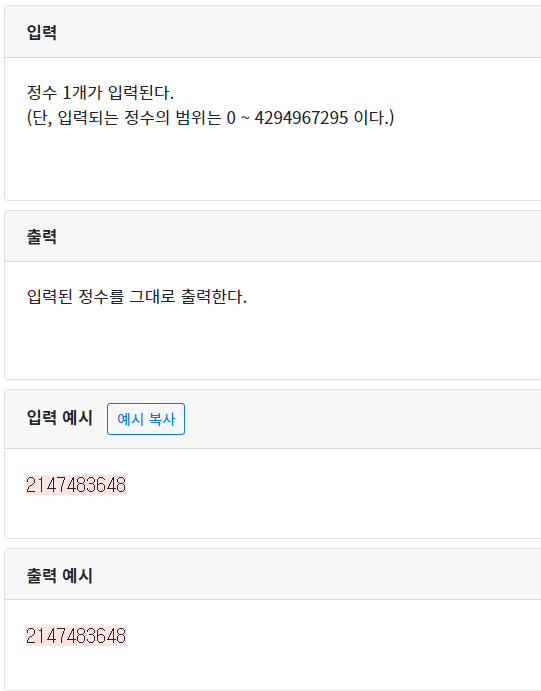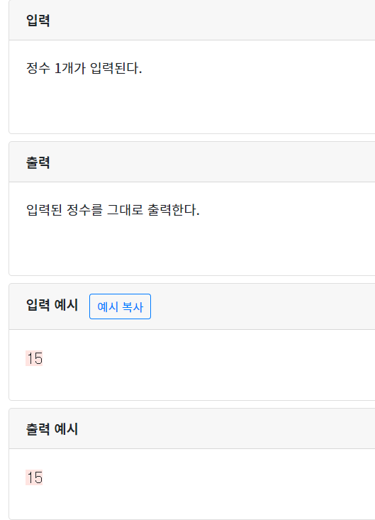정수 입력을 받고 정수를 그대로 출력하는 것이 목적이다.