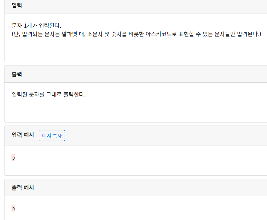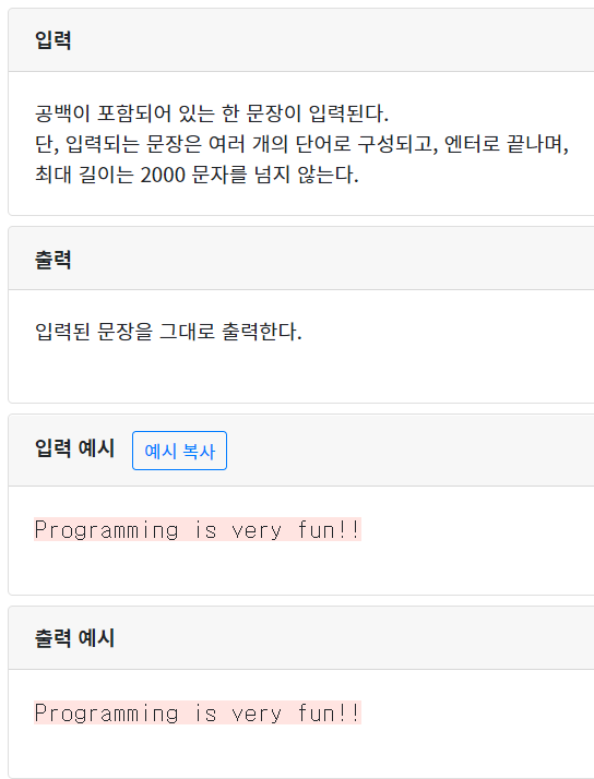 c언어로 풀이를 한다면 복잡할 수도 있겠지만 파이썬으로 풀이하기에, 위 코드와 똑같이 그저 입력된 문자열을 그대로 출력해줘서 풀었다.