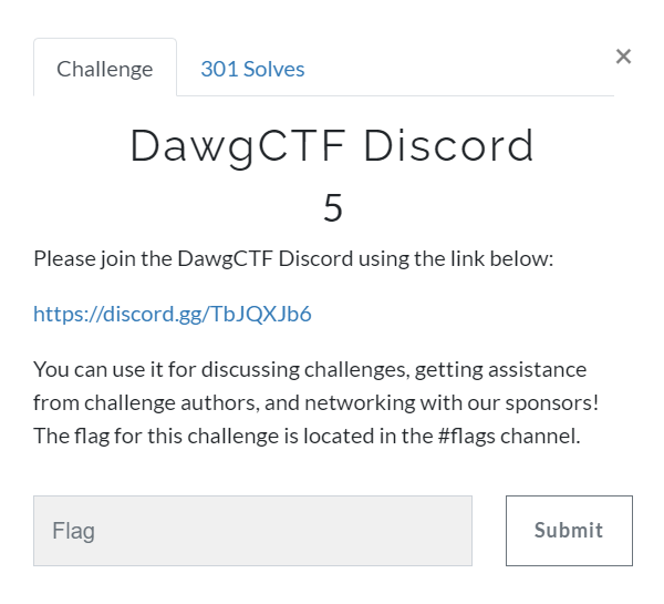 DawgCTF Discord 문제다. DawgCTF의 Discord 서버에 접속한 후 General - flag 채널에 간다면 flag를 얻을 수 있다.