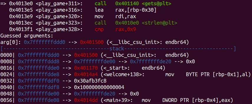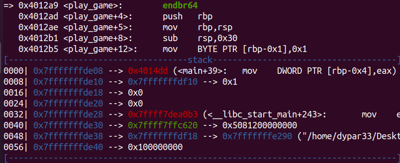 일단 gdb를 통해 aslr 여부, win_game의 주소, input 변수에서 ret까지의 거리를 확인해보겠다.