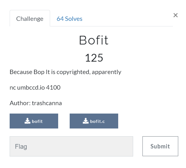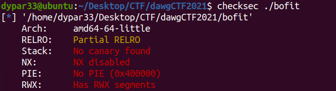 DawgCTF 2021의 Bofit 문제다. elf 파일인 bofit과 c언어 소스 코드인 bofit.c가 주어져있다.