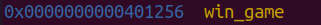 차를 구하면 input 변수와 ret의 거리가 56byte인 것을 알 수 있다. 따라서 56byte를 더미 값으로 채워준 후 win_game 함수의 주소를 64bit little endian으로 패킹해 payload를 생성하면 될 것 같다.