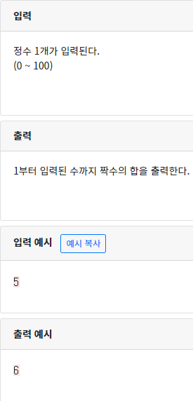 1부터 입력한 값까지 짝수의 합을 출력하는 것이 목적이다.