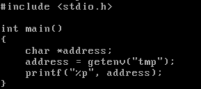 환경변수의 주소는 위와 같은 코드의 프로그램을 컴파일해 구했다. getenv("<환경변수>");를 해주면 해당 환경변수의 주소를 구할 수 있는데, 이 주소를 address에 저장하고 %p 서식 지정자로 출력했다.